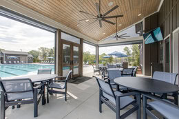 At The Gathering Place, there is no shortage of outdoor fun to enjoy when the weather is nice. Two lighted tennis courts (striped for four pickleball courts as well), a swimming pool with abundant lounge seating and covered gazebos, plus an expansive playground with cushioned rubber matting suited for kids 5-12, all make up hours of ways to play the day away. There are also well-appointed, dedicated restrooms featuring indoor and outdoor showers located between the pool and tennis courts for easy access and convenience.