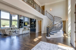 This stunning custom home built by Stonegate Homes, sits on one of the best golf course/ridgeline view homesites in the Grove! It has a beautiful 2 story floor to ceiling windows overlooking the 2nd green and ridgeline in the distance. Primary bedroom with two full bath ensuites, second bedroom with covered outdoor patio access, office, dining room and great room all on the first floor. Spiral staircase takes you to the second floor which has three ensuite bedrooms, oversized bonus room, with flex space that could be utilized as an exercise room or 2nd office space. The great room is the perfect area to entertain with incredible views out to the verandah and to the course. There is both a covered and uncovered area outside to enjoy the views!