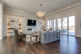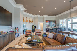 One of a kind custom home by Hatcliff Construction! The very best views in The Grove, overlooking the golf course, lakes, and the beautiful ridge lines in the distance, all from infinity-edge pool/spa & all of the window walls that allow inside to flow seamlessly to the outside. Six bedroom/7.5 bath home with elevator to all floors, including attic. Magnificent chef’s kitchen will be one of the centerpieces for entertaining. Countless outdoor covered areas, along w/ bonus/gaming/bar play rooms, 5 Car Garage.