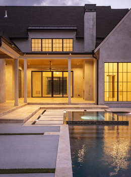 European Farmhouse at The Grove!! Step into Old World Styling with Modern updates with this incredible new Trace Construction home! Exterior is brick with Mortar Rub finish for true European feels! Over 7,000sf of heated elegance with Soaring 2-Story Great Room highlighted with wood beams and a Thermador Chef’s Kitchen! Don’t miss the pass through to the working Scullery! Family Room off the back has Vaulted Ceilings with stone fireplace! Look out to the pool/spa through a custom roll-up door and serving bar! Guest enjoy their own quarters over the garage too! Lot backs to community open space and access to community trail system! Don’t miss this one-of-a-kind stunner!!