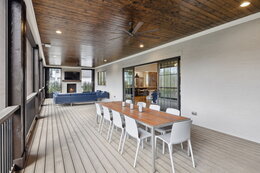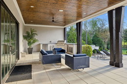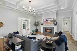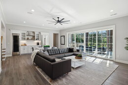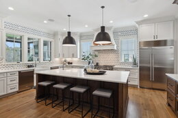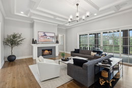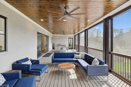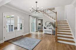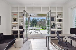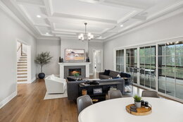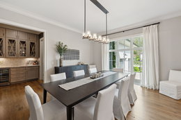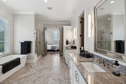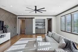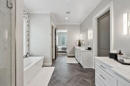 Old World Charm Meets Modern Luxury at The Grove! Like-New European Villa with all-brick mortar rub exterior! WOW! Step into timeless luxury with nearly 7,500sf of living space! Sand and Finish Oak Planks throughout first and second floors! Huge Professional Kitchen with Wolf/SubZero/Cove appliances, Serving Island, Built-in Buffet, and walk-in Pantry with built-in Miele Coffee Machine, second microwave and prep area. Formal Dining Room, Butler’s Pantry, lavish Primary Suite all on main level! Bedroom 6 on main level provides tons of options! Wide upper terrace has fireplace and electric screens for cozy evening sunsets! 3 Bedroom Suites upstairs each with en-suite baths, and huge Family Room w/ 4 Kids Bunks too! Lower Level Entertainment/Game space has Bar Area with 100 bottle Wine Column, and sliders out to covered terrace with BBQ Center, and large flat back yard perfect for a pool! Also on Lower level, a SECOND Primary Suite perfect for guests/generational living, an Office Suite with French Doors out to terrace, Elevator service, and a Storm Room with concrete surround setup as a Home Gym! Lovely outdoor entertaining terrace with custom fire pit and Jacuzzi tub! Backs to open space and creek for privacy year round! 4 car Courtyard Garage! This one has it all!!